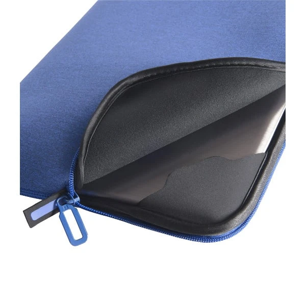 Funda de neopreno en color azul de la marca Tucano y del modelo Melange Sleeve con diseño ajustado para llevar ordenador portátil de hasta 10 pulgadas. Es una funda que está equipada con el sistema antideslizante Anti-Slip System® de Tucano que protegen el dispositivo de arañazos y evitan caídas fortuitas.