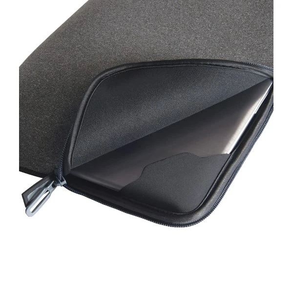 Funda de neopreno en color negro de la marca Tucano y del modelo Melange Sleeve con diseño ajustado para llevar ordenador portátil de hasta 10 pulgadas. Es una funda que está equipada con el sistema antideslizante Anti-Slip System® de Tucano que protegen el dispositivo de arañazos y evitan caídas fortuitas.