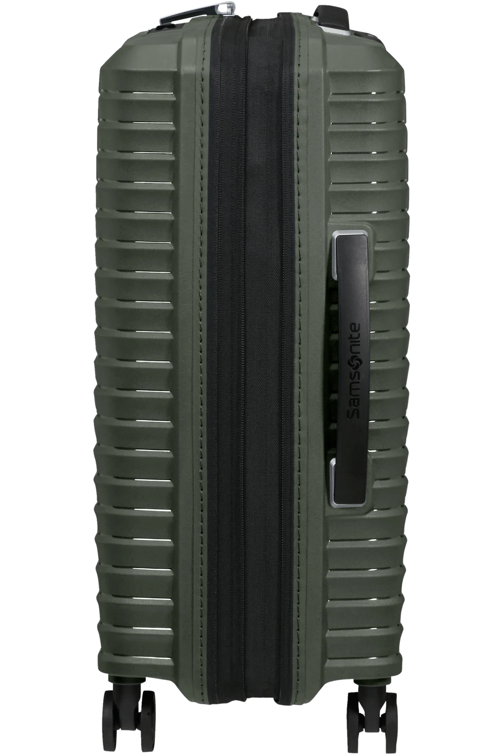 Maleta de cabina de Samsonite, coleccion Upscape. Perfecta para viajes de 2 dias. Fabricada en polipropileno, con extrema ligereza. 4 ruedas de suspension amortiguadora. Interior forrado con tejido lavable. Tirador de doble tubo. Cremallera para expandir su capacidad 6 litros más. Cierre con cerradura de combinacion con TSA. Color Verde.