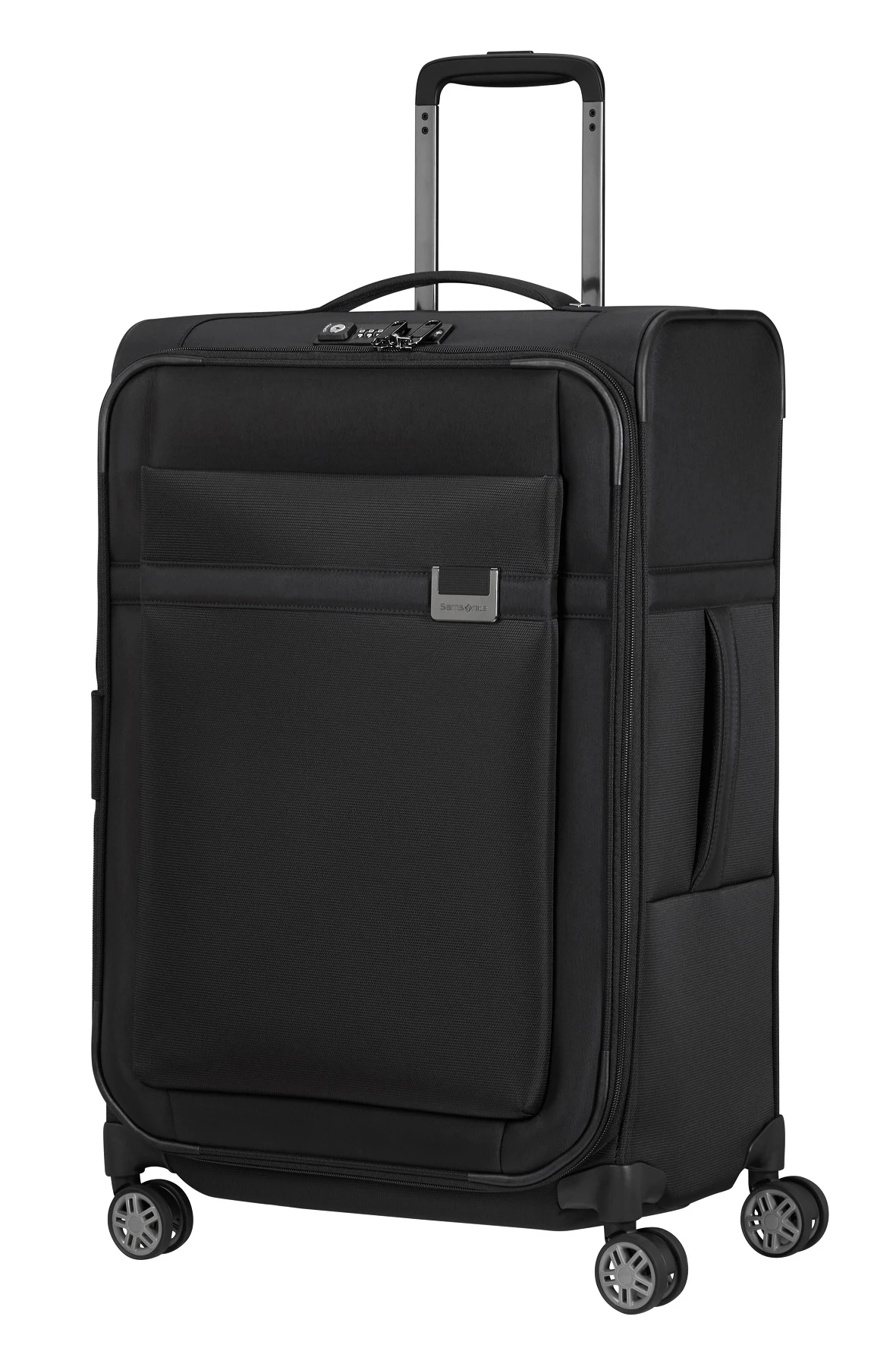 Maleta mediana expandible 4 ruedas Samsonite Airea color negro. Capacidad hasta 82 L. Pesa 2,4kg. Cerradura con bloqueo de codigo TSA.
