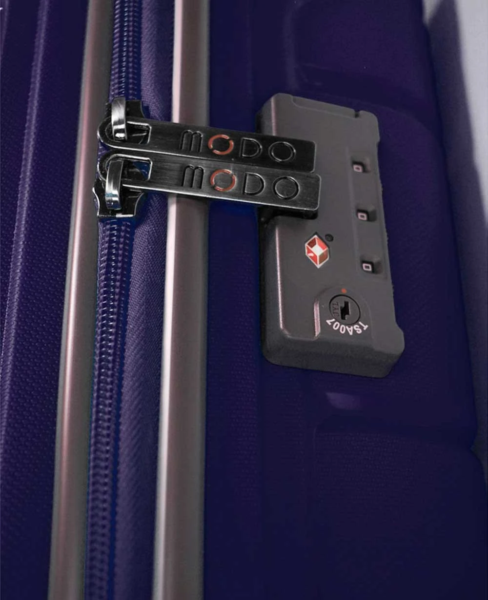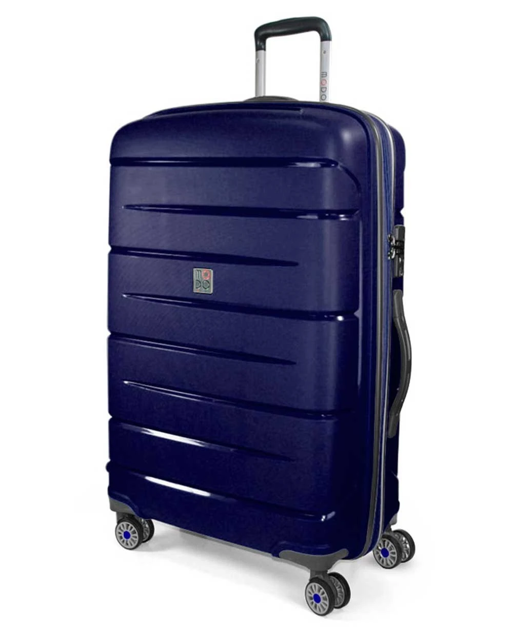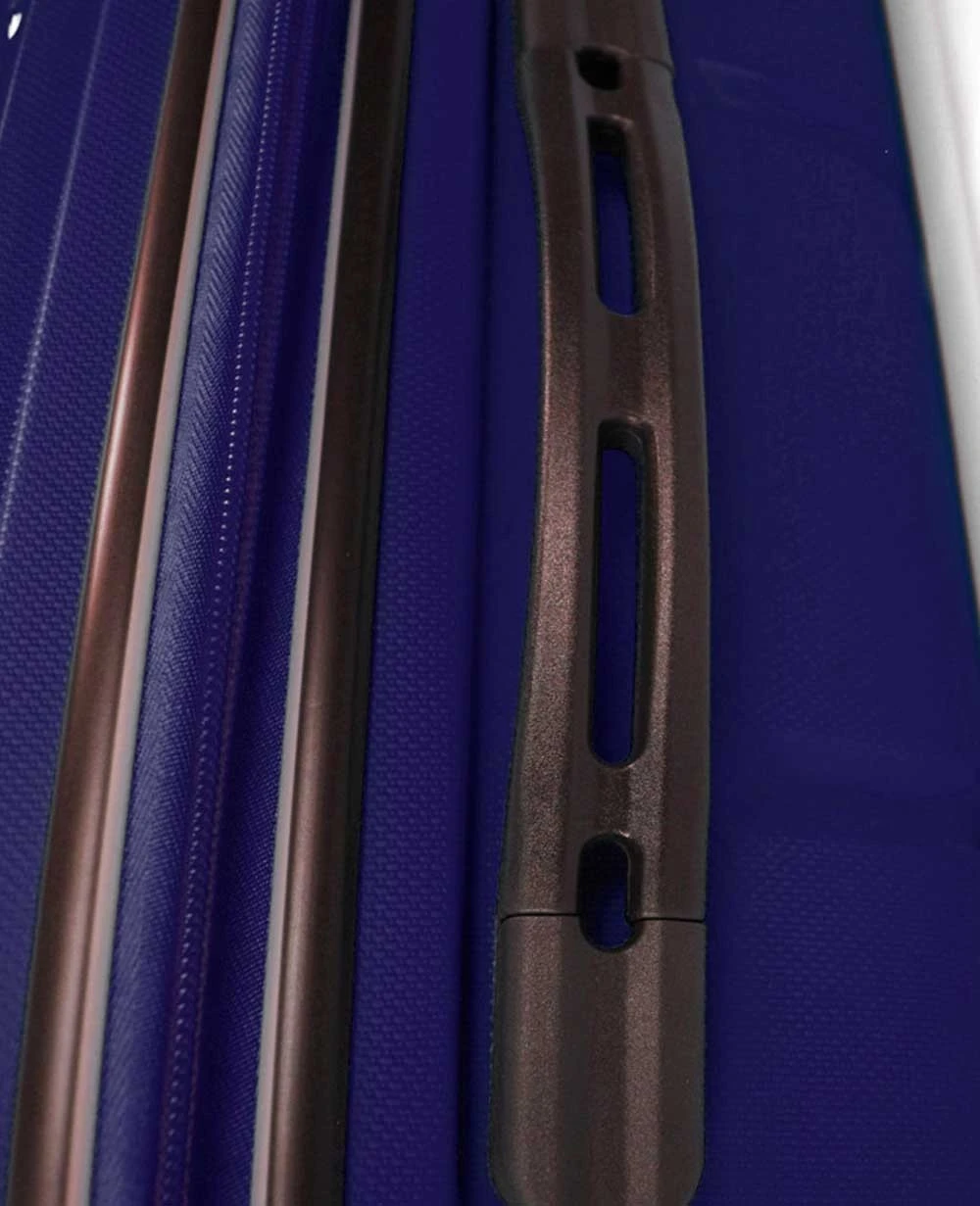 Maleta-trolley en tamaño mediano en color azul marino de la marca Roncato modelo Starlight. Las características más destacadas son la gran resistencia ante golpes, ligera de peso y su resistencia al agua. El interior del trolley ofrece unos bolsillos contenedores para objetos y cintas de sujeción para organizar el contenido de forma adecuada. El diseño exterior es muy destacado, la maleta se basa en 4 ruedas multidireccionales y un asa doble extensible en la parte superior. El cierre de la maleta en el lateral es de alta seguridad. En la parte interior exterior posee un espacio para detallar el nombre del titular de la maleta.